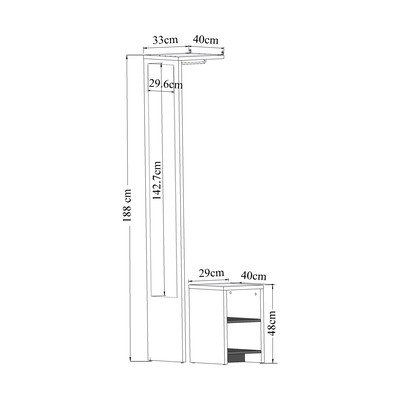 U dekoru hrasta, od iverice, završna obrada: Melamin, u prirodnoj boji, širina 40 cm, visina 188 cm, dubina 33 cm