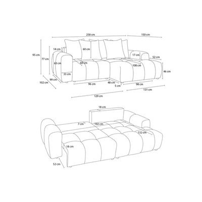 Od bouclé tkanine, sklopiva/s prostorom za odlaganje, s lijevim kutom/s ležaljkom, kaki zelena, s 3 mjesta, širina 258 cm