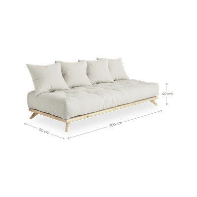 Okvir je izrađen od visokokvalitetne borove drveće na kojem se nalazi udoban futon ispunjen jezgrom od pjene i čašice od vune. Paket uključuje i četiri velika jastuka koji će osigurati udobnost vašim leđima.