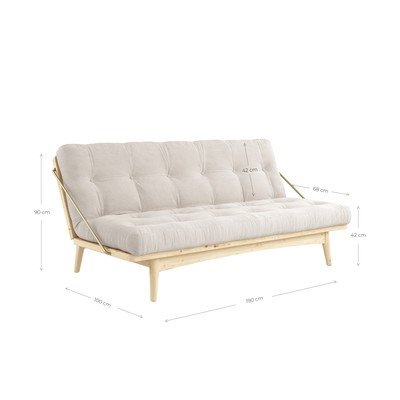 Vark varijabilna sofa utjelovljuje skandinavsku jednostavnost. Čiste linije u kombinaciji sa zaobljenim rubovima razigrano će se uklopiti u ugodan i funkcionalan život. Laganim pokretom sofu možete pretvoriti u bračni krevet jednostavnim otpuštanjem naslona za ruke. Tako će postati idealan komad za moderan dnevni boravak ili studentski stan. Osim toga, njegova konstrukcija je izrađena od čvrstog borovog drveta s FSC® certifikatom. Veličina futona je 130 x 190 cm, a visina 14 cm. Kauč dolazi u 2 paketa dimenzija 32 x 190 x 16 cm (36 kg) i 130 x 90 x 27 cm (15 kg). Njega materijala: Prilikom spavanja na ovoj sofi preporučamo korištenje plahte kako biste održali dugovječnost uglavnom prirodnih tkanina za presvlake. Čistite samo suhom krpom kako biste spriječili stvaranje mrlja.