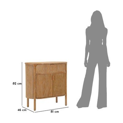 Komoda Göteborg brenda Mauro Ferretti izrađena je od jelovine i impresionira svojim jedinstvenim dizajnom. Zaobljene bočne stijenke i užljebljena površina prednjih ploča daju namještaju prepoznatljiv izgled. Komoda je opremljena jednom gornjom ladicom unutarnjih dimenzija 56,5 x 34 x 12 cm i dvoja vrata u donjem dijelu, koja nude puno prostora za pohranu.
