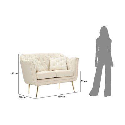 Baršunasti, krem, s 2 mjesta, širina 130 cm