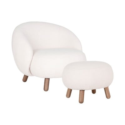 S taburom, od bouclé tkanine, krem