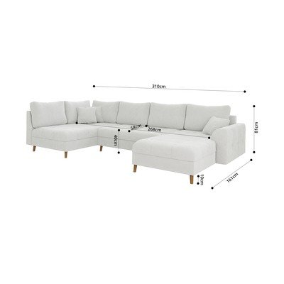 Od bouclé tkanine, s desnim kutom/u obliku slova "U", bijela, ostali, širina 310 cm