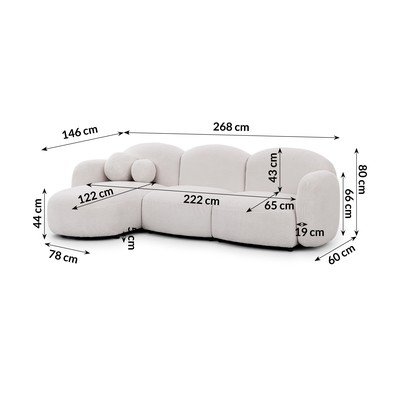 Krem kutna garnitura od bouclé tkanine (s lijevim kutom/s ležaljkom) Orbit – Ropez