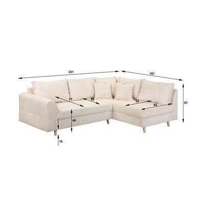 Od samta, s desnim kutom/u obliku slova L, bež, s 3 mjesta, širina 231 cm
