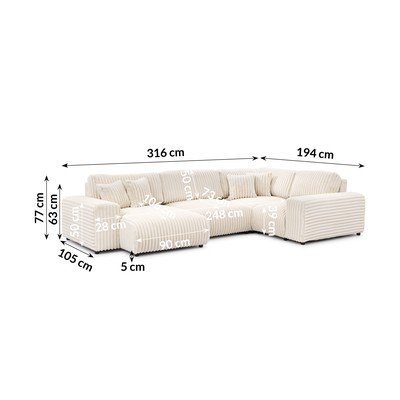 Od samta, s desnim kutom/u obliku slova "U", krem, vodootporna/otporna na mrlje, s 4 mjesta, širina 316 cm