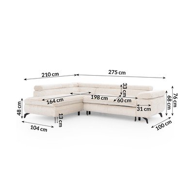 Od samtaPodesiva/sklopiva/s prostorom za odlaganjeS lijevim kutom/u obliku slova LKremPogodna za kućne ljubimce/otporna na mrljeS 4 mjestaŠirina 275 cm