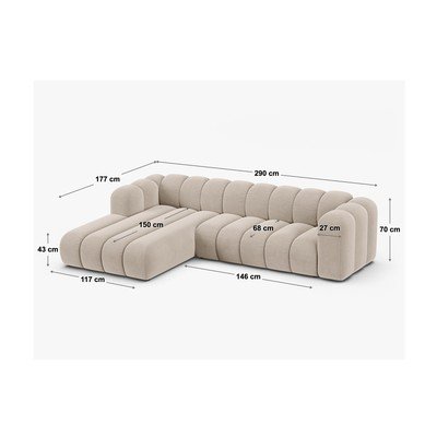 Bež kutna garnitura od šenila (s lijevim kutom/s ležaljkom) Lupine – Micadoni