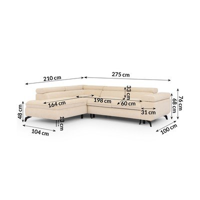 Od šenilaPodesiva/sklopiva/s prostorom za odlaganjeS lijevim kutom/u obliku slova LKremPogodna za kućne ljubimce/otporna na mrljeS 4 mjestaŠirina 275 cm