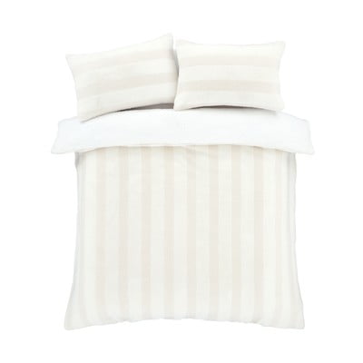 Za bračni krevet/za produženi krevet, na gumbe, bez peglanja/topla, od mikropliša, prugasta, krem, 230x220 cm
