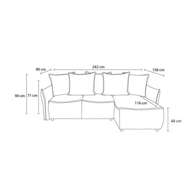 Sklopiva/s prostorom za odlaganjeS desnim kutom/s ležaljkomKremS 3 mjestaŠirina 242 cm