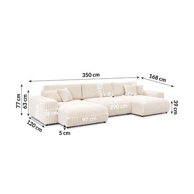 Od samta, sklopiva/s prostorom za odlaganje, u obliku slova "U", krem, vodootporna/otporna na mrlje, ostali, širina 350 cm