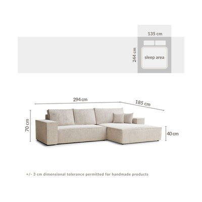 Od šenilaSklopiva/s prostorom za odlaganjeS desnim kutom/s ležaljkomKremS 4 mjestaŠirina 294 cmDubina 185 cmDubina sjedala 65 cm