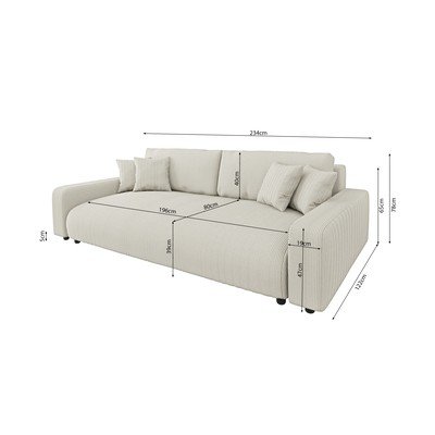 Od samta, sklopiva/s prostorom za odlaganje, krem, s 3 mjesta, širina 234 cm