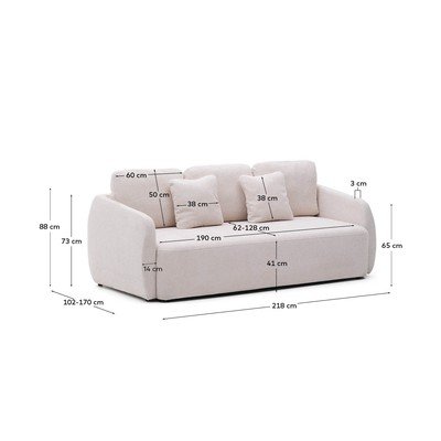 Od šenila, sklopiva, s jastučnicom koja se može skinuti, krem, s 3 mjesta, širina 218 cm