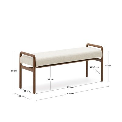 Od šenila, od masivnog drveta/podstavljena, krem/u prirodnoj boji, širina 120 cm, dubina 38 cm, visina 50 cm