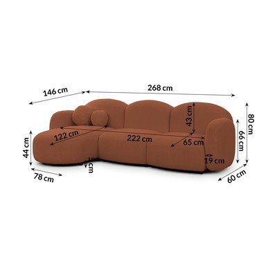 Kutna garnitura od bouclé tkanine boja terakote (s lijevim kutom/s ležaljkom) Orbit – Ropez