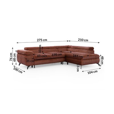 Od samtaPodesiva/sklopiva/s prostorom za odlaganjeS desnim kutom/u obliku slova LBoja terakotePogodna za kućne ljubimce/otporna na mrljeS 4 mjestaŠirina 275 cm