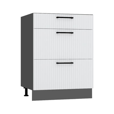 Modernu kuhinju Rowan krase baršunasto mekane na dodir i trendi mat prednje površine. Vrata su izrađena od vlaknatice debljine 16 mm s mat folijom. Okovi sa sustavom mekog zatvaranja osiguravaju glatko i tiho zatvaranje bez lupanja. Radna ploča je izrađena od melamina debljine 38 mm. Površina mu je ukrašena Kalisto dekorom. Ormari se mogu rasporediti prema vlastitim željama . Ormari se isporučuju zasebno. Visina nogu također se može podešavati. Popis pojedinačnih ormarića: 5 donjih ormarića: - D60 S/3 - donji ormarić s tri ladice, - D60PC P/L - donji ormarić s jednokrilnim vratima - DNP P/L - donji kutni ormarić - D60ZL P/L - jednokrilni ormarić ormarić ispod umivaonika - D20cargo - donji ormarić na izvlačenje s košarom za teret 5 gornjih ormarića: - W60 GRF/2 - gornji ormarić s krilnim vratima - W60/68 SLIM P/L - gornji ormarić s napom - WRN P/L - kutni gornji ormarić - W50 P/L - gornji ormarić s jednokrilnim vratima - W60 P/L - gornji ormarić s jednokrilnim vratima 1 gornja polica Visoki bočni ormarić nije uključen u kuhinju. Detaljne specifikacije nape: - Dvije LED žarulje (HV, 14 4000K), - 3 načina ekstrakcije, - snaga: 180 - 310 m3/h, - maksimalni tlak: 230 - 260 Pa, - snaga motora: 85 - 125 W, - energija klasa D. Dobro je znati: Dva dugačka dijela letvice pakiraju se zasebno.