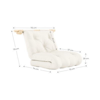 Stolica je opremljena s četiri zidna nosača koji je sigurno drže na mjestu, a istovremeno joj omogućuju da funkcionira kao dekorativni element u sobi. Za sjedenje jednostavno pomaknite stolicu u niži položaj. Kada vam je potrebno mjesto za spavanje, samo raširite madrac na podu. Nosači se mogu postaviti u različitim sobama, što vam omogućuje pomicanje stolice po potrebi. Nosiva šipka je široka 115 cm.