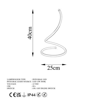 LED, metalna, s utikačem, u zlatnoj boji, visina 40 cm