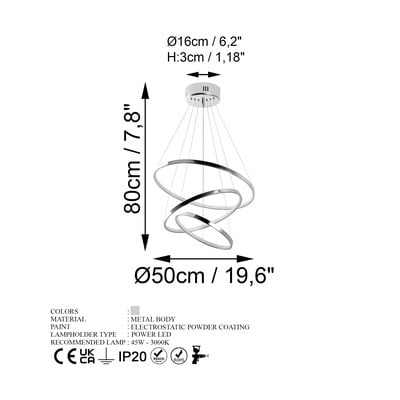LED, metalna, u srebrnoj boji, ø 50 cm, visina 80 cm