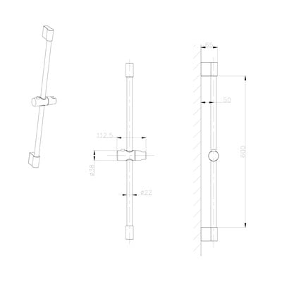 Zidna, s kliznim nosačem, od nehrđajućeg čelika, mat crna, 71 cm