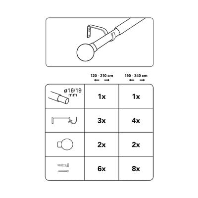 Karniša KouleProširiva, metalna, u srebrnoj boji, 120 - 210 cm