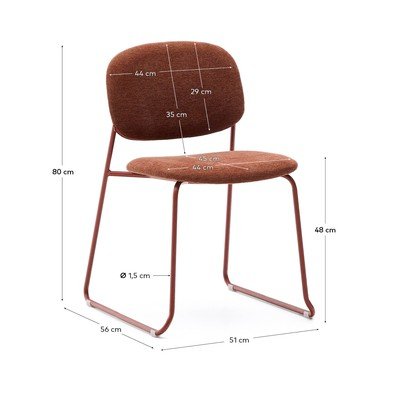Stolica Melibrenda Kave Home je slagajuća, što olakšava skladištenje. Naslon i sjedalo su presvučeni šenil tkaninom i imaju unutarnje ojačanje od šperploče od topole. Metalne noge s mikroteksturom pružaju stabilnost. Dobavljač tkanine ima OEKO-TEX® STANDARD 100 certifikat, što jamči ekološki prihvatljivu i odgovornu proizvodnju. Drvo korišteno za ojačanje ima FSC Mix Credit certifikat, što znači da dolazi od mješavine materijala iz FSC certificiranih šuma i kontroliranog drva. Praktični zaštitnici na nogama sprječavaju grebanje poda.
