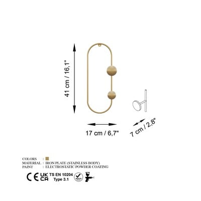 S policom, metalna, u zlatnoj boji, širina 17 cm, visina 41 cm, dubina 7 cm