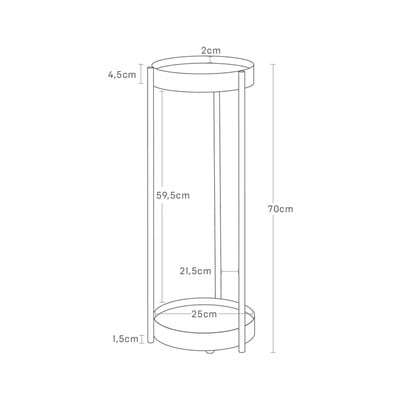 Stalak za tegle za cvijeće Tower brenda Yamazaki elegantan je i praktičan dodatak svakom interijeru. Zahvaljujući minimalističkom dizajnu, uklapa se u moderne i klasične prostore. Stol je izrađen od metala i ima dvije police. Gornja polica ima nosivost od 2 kg, donja može podnijeti do 5 kg. Zahvaljujući kotačima, lako se rukuje.