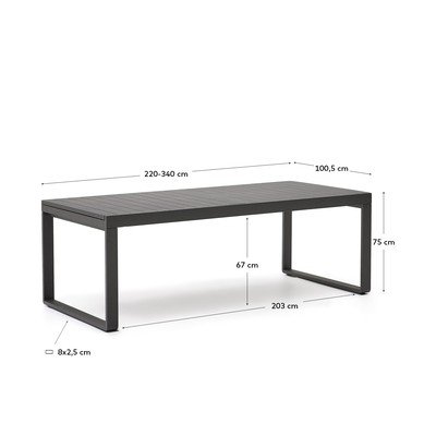 Metalni, proširiv, crni, 100,5x220 cm, duljina rasklopljenog 340 cm
