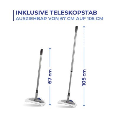 Za podove, prozore i pločice. Ovaj mop iz Maximexa dolazi s tri različita mop nastavka za različite površine. Svaki je izrađen od posebne kombinacije vlakana za uklanjanje prljavštine bez potrebe za kemikalijama. Za udobno rukovanje, teleskopska ručka može se pojedinačno podesiti po duljini, u rasponu od 67 do 105 cm. To olakšava dohvat čak i teško dostupnih mjesta.
