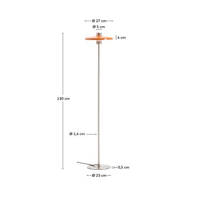 Podna lampa Nuvira brenda Kave Home odlikuje se elegantnim i funkcionalnim dizajnom. Njena konstrukcija je izrađena od satenskog čelika, što će svakoj prostoriji dodati moderan i sofisticiran dodir. Svjetiljka također ima ekstra fini tekstilni kabel, koji izgleda visokokvalitetno i elegantno te se savršeno uklapa u različite vrste interijera. Kompatibilna je s G9 žaruljom, ali žarulja nije uključena.