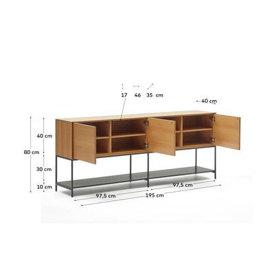 U dekoru hrasta, od MDF-a, završna obrada: Furnir/završna obrada: lak, u prirodnoj boji, širina 195 cm, visina 80 cm, dubina 40 cm