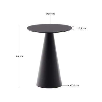 Wilshire by Kave Home je elegantan bočni stolić modernog dizajna. Njegova okrugla ploča izrađena je od kaljenog stakla s završnom obradom protiv otisaka prstiju. Staklo je obrađeno posebnim postupkom koji osigurava ujednačenu i izdržljivu površinu. Stol stoji na konusnoj čeličnoj podlozi koja je praškasto premazana. To stvara čvrst i izdržljiv sloj koji štiti podlogu od udaraca, ogrebotina i habanja. Na podlogu su postavljeni posebni elementi za zaštitu vašeg poda.