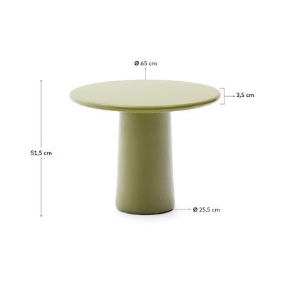 Stol za kavu Albanella brenda Kave Home skladna je kombinacija stila i praktičnosti. Ovaj okrugli stol sa sjajnom završnom obradom izrađen je od GFRC-a, kompozitnog materijala od cementa ojačanog staklenim vlaknima. To ga čini laganim, otpornim na habanje, a istovremeno zadržava robusnu strukturu. Stol je prikladan za upotrebu u zatvorenom prostoru i u natkrivenim vanjskim prostorima. Male mikropukotine i nepravilnosti, koje su prirodno svojstvo cementa i nastaju zbog promjena temperature, daju stolu autentičan karakter i ni na koji način ne utječu na njegov integritet. Kako bi se održao njegov izgled i svojstva, preporučuje se zaštita od nepovoljnih vremenskih uvjeta, na primjer zaštitnim navlakama, te nanošenje zaštitnog premaza za kamen dva puta godišnje.