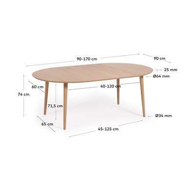 Proširiv, s dodatnom pločom, u dekoru hrasta, ø 90 cm, duljina rasklopljenog 170 cm