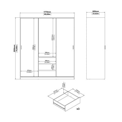 S dimenzijama od 177x200x60 cm, pruža dovoljno prostora za vašu odjeću. Ormar ima dvoja klizna vrata, jedna vrata na šarke, tri ladice i kombinaciju polica i šipki za odjeću. Dekor hrasta i prirodna boja daju ormariću elegantan izgled koji se uklapa u moderne interijere.