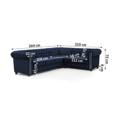 BaršunastiSklopivaChesterfieldS desnim kutom/u obliku slova LPlavaVodootporna/otporna na mrljeS 4 mjestaŠirina 264 cm
