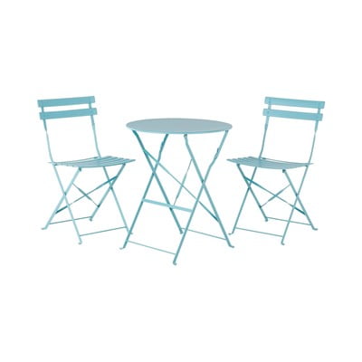 Vrtni namještaj odgovara opisu. Dobar omjer cijene i kvalitete. Prekrasna plava boja, metal izgleda izdržljivo. Prednost je mogućnost sklapanja za zim...