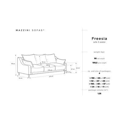 Sofa na razvlačenje Freesia popularnog brenda Mazzini Sofas bit će prikladna sofa u dnevnoj ili gostinskoj sobi. Lako se može raširiti na prostrani krevet, na kojem spavate kao oblak. Odlično rješenje za male prostore ili za goste. Sofa Mazzini Sofas Freesia nudi izdržljivu konstrukciju od drveta i iverala koja može izdržati do 350 kg! Visokokvalitetno punjenje od meke pjene osigurat će najveću udobnost. Zaslužujete trenutak opuštanja. Opustite se u stilu u sjedalu Freesia. Veličina kreveta po rasporedu: 135 x 195 cm