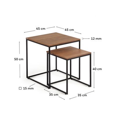 2 komS pločom stola u dekoru orahaCrni/smeđi45x45 cmVisina 50 cm