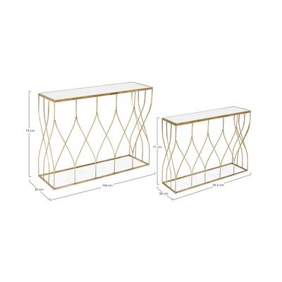 2 kom, sa staklenom pločom stola, u zlatnoj boji, 33x104 cm, visina 79 cm