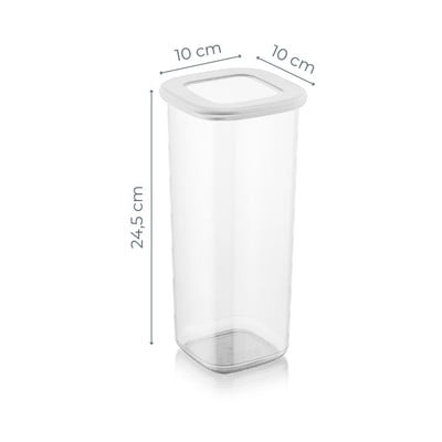 Praktična veličina, može držati kilogram brašna, šećera i tjestenine... Visoka posuda ne zauzima puno prostora, lagana je i jednostavna za držanje.
