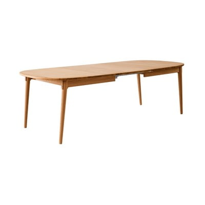 Ovaj blagovaonski stol izrađen je imajući na umu visoku kvalitetu i održivost. Zato je materijal masivno hrastovo drvo. Osim toga, njegova duljina može se produžiti na 234 ili do 284 cm s do dva dodatna vrha, koji se moraju kupiti zasebno.