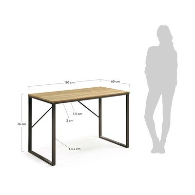 Talbot stol brenda Kave Home praktičan je i elegantan dodatak svakom radnom prostoru ili uredu. Njegova gornja ploča izrađena je od MDF-a s efektom drva, što mu daje prirodan izgled. Konstrukcija i noge stola izrađene su od čelika, što osigurava stabilnost i izdržljivost. Kako bi zaštitile vaš pod, noge su opremljene plastičnim zaštitnicima koji sprječavaju ogrebotine. Zahvaljujući svom svestranom dizajnu, lako se prilagođava različitim stilovima interijera.