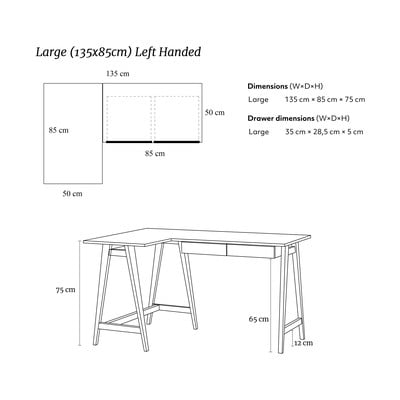Radni stol Luka opremljen je ladicom dimenzija 35 x 28,5 x 5 cm. Imat ćete sve pri ruci i istovremeno prostrano radno okruženje.