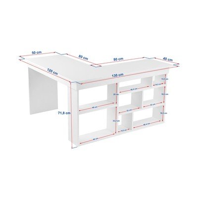 Kutni stol Vesper brenda Kalune Design nudi praktičan prostor za pohranu i učinkovito korištenje prostora zahvaljujući L-obliku i integriranim policama.